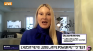 - March 7: CAC President Elizabeth Wydra was featured on Bloomberg’s Balance of Power discussing the unlawful federal funding freeze and the legal consequences of Trump calling Elon Musk the head of DOGE in his joint address to Congress. “TV (Bloomberg): Could Trump Saying Musk Heads DOGE Create Legal Issue?”