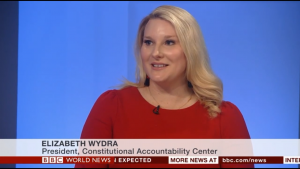 CAC President Elizabeth Wydra appearing on BBC World News on May 2, 2019.